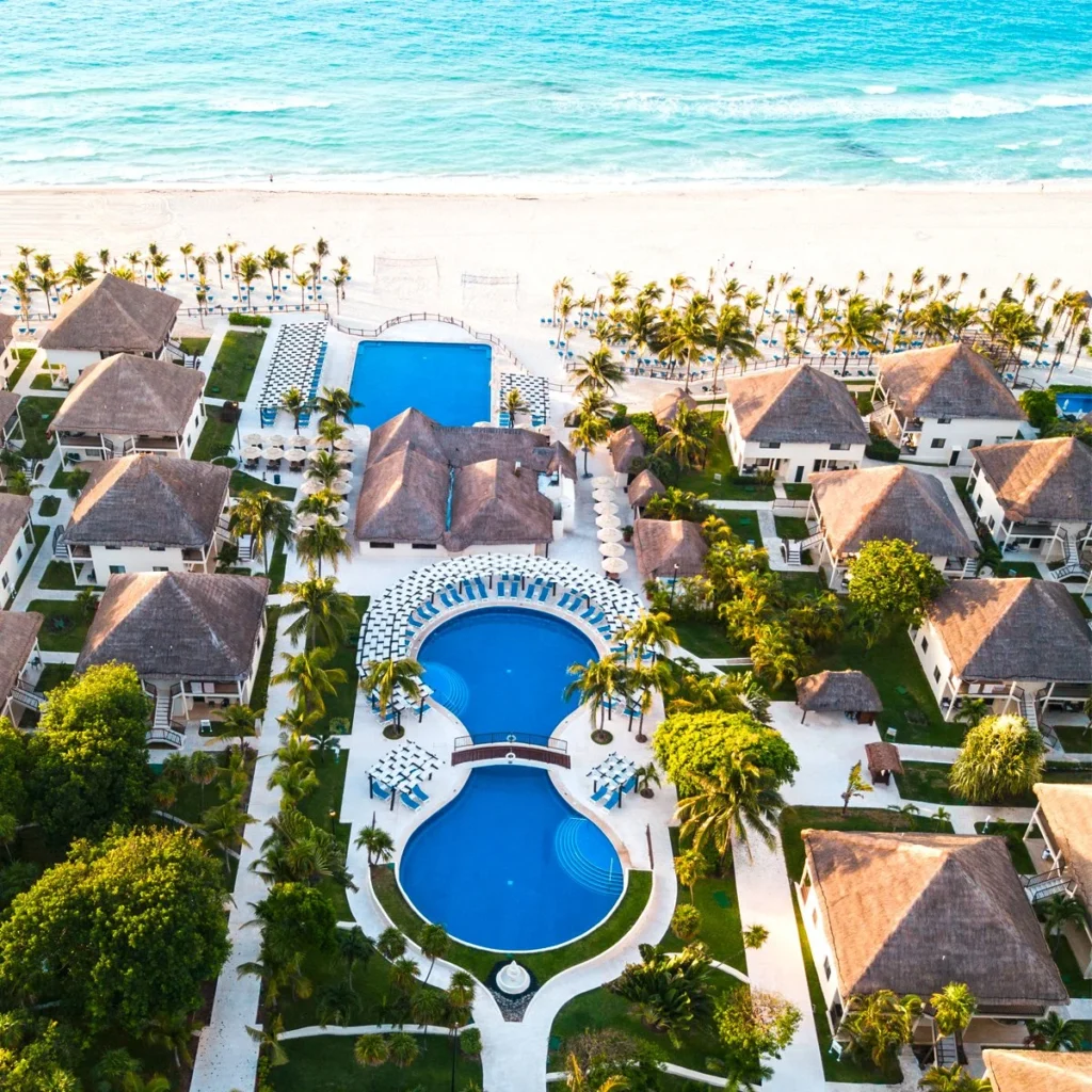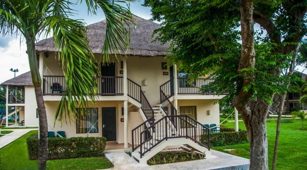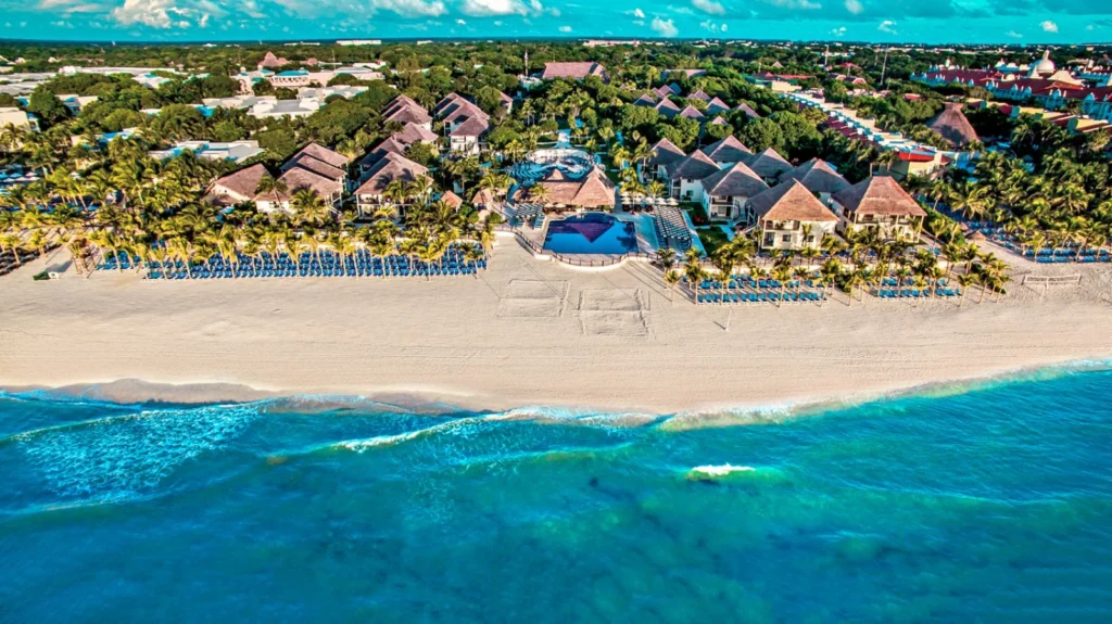 Situato all’interno del comprensorio turistico di Playacar, il resort si trova a circa 2 km dalla famosa Quinta Avenida di Playa del Carmen e a 52 km dall’aeroporto di Cancun. Dall’edificio principale dove si trovano la lobby e altri servizi comuni, si snodano i vialetti che portano alle ville a due piani ricoperte dalle tipiche “palapas”, fino a raggiungere le tre piscine ed infine la splendida spiaggia.